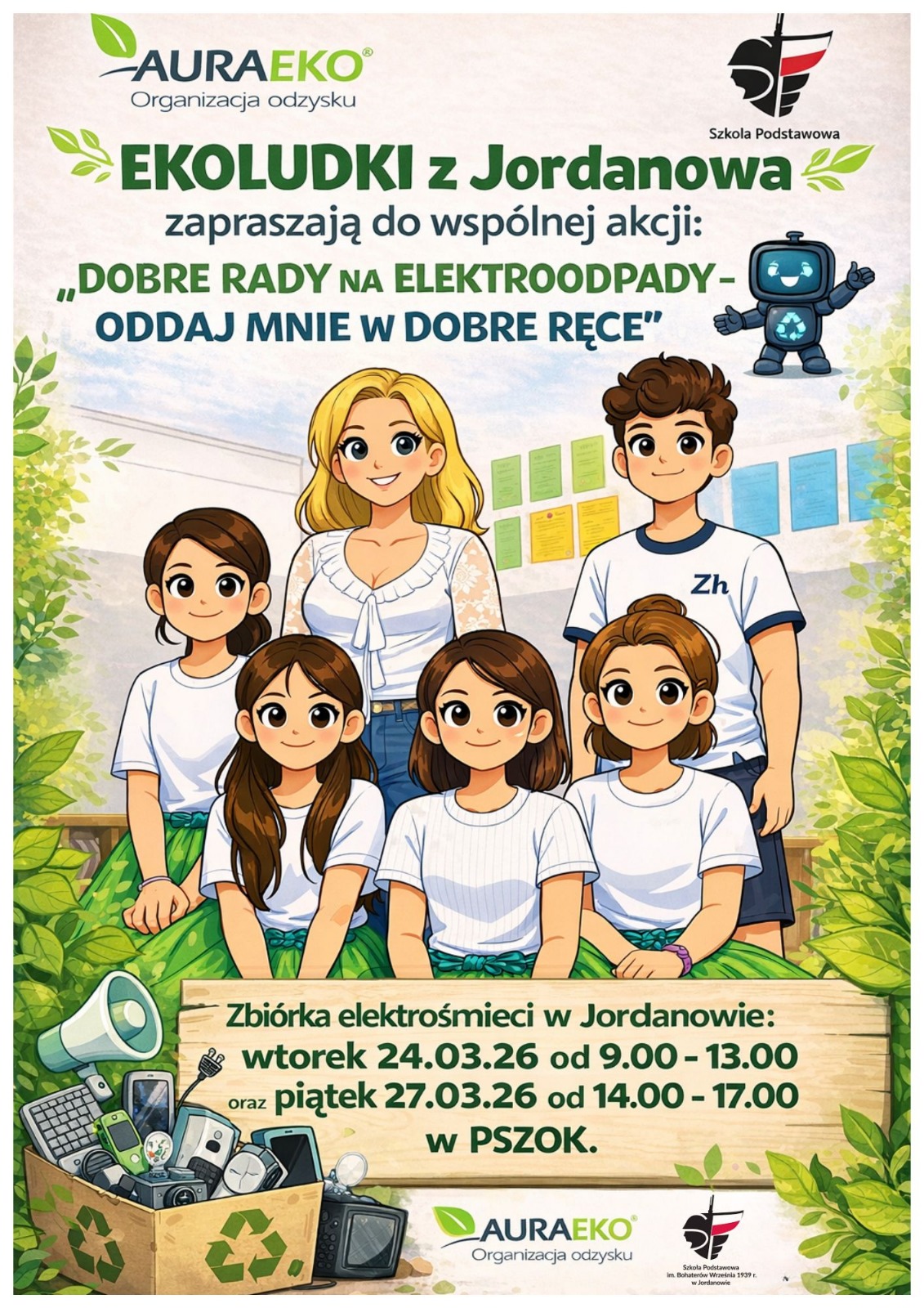 Szkoła Podstawowa im. Bohaterów Września 1939 roku w Jordanowie bierze udział w XVII edycji Ogólnopolskiego Konkursu Ekologicznego „Dobre Rady na Elektroodpady – Oddaj mnie w dobre ręce 2026”.