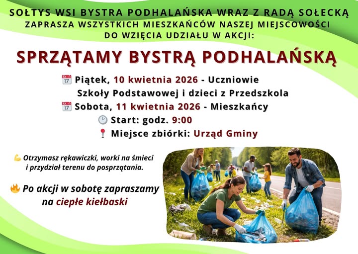Warto dodać, że to jeszcze nie koniec. Jak wynika z opublikowanego wcześniej plakatu, w sobotę, 11 kwietnia, w akcji „Sprzątamy Bystrą Podhalańską” mają wziąć udział mieszkańcy miejscowości. Zbiórkę zaplanowano na godz. 9:00 przy Urzędzie Gminy.